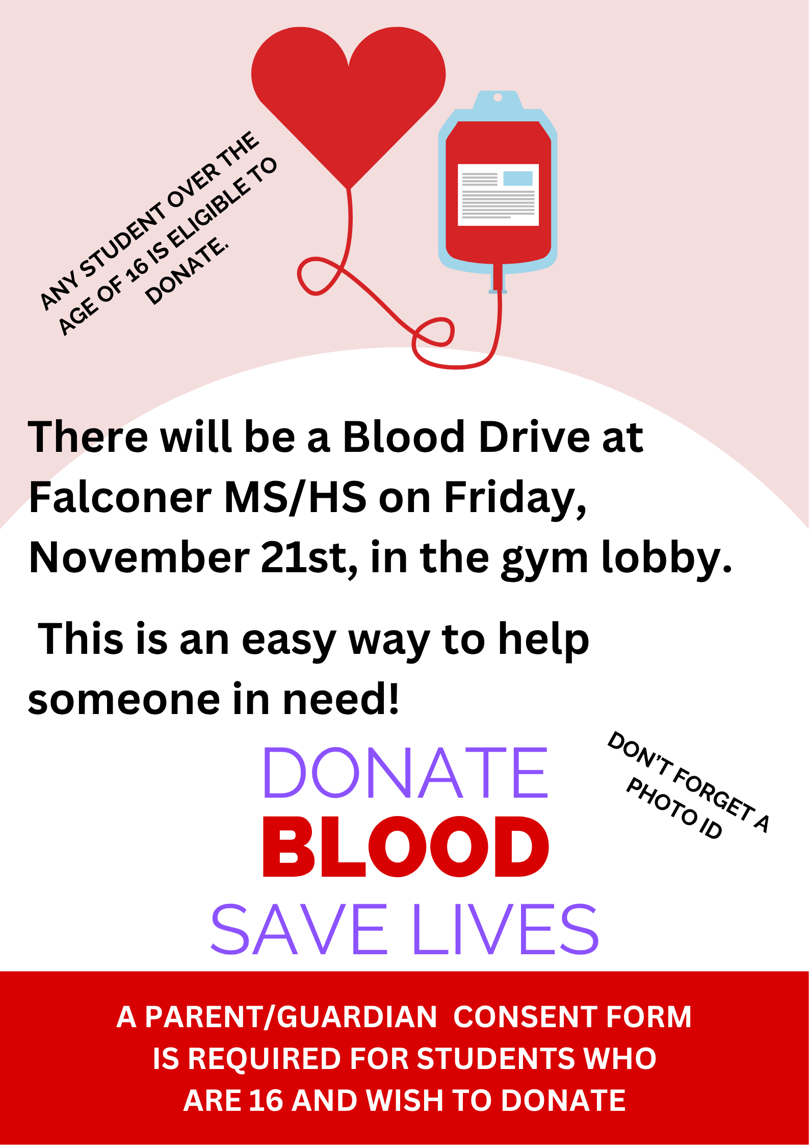 A banner with the words 'FALCON STRONG' in yellow and white letters on a blue background with a radial pattern.
